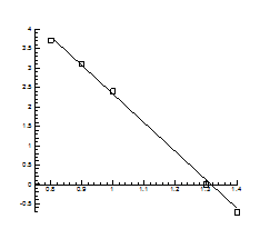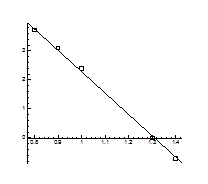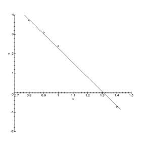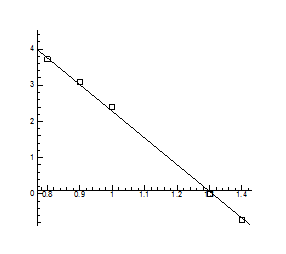 > Data3:=[[1.4,-5/7], [0.8,3+5/7], [0.9,3.1], [0.9,3.1], [1,2.4], [1.3,0]];