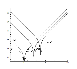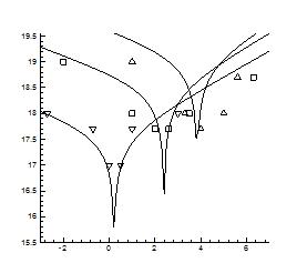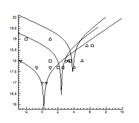 > DataE:=[[3,18],[-2.7,18],[1,17.7],[-0.7,17.7], [0,17], [0.5,17]];