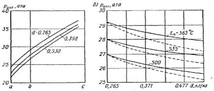 – общая степень повышения давления и количество впрыскиваемого пара в продукты сгорания установлены ниже оптимальных значений;
