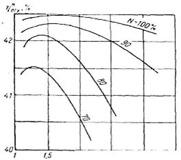 Рис. 8. К. п. д. ПГУ при частичных нагрузках: