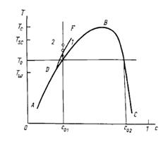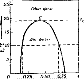 В точке С обе жидкие фазы становятся одинаковыми. Эта точка называется критической точкой растворения. При изменении общего давления критическая температура и состав критической смеси также изменяются и образуют критическую кривую растворения.
