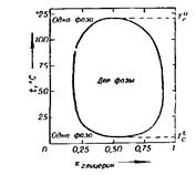 Наконец, существуют системы, обладающие как верхней, так и нижней критическими температурами -растворения. Примером является система м-толуидин — глицерин, фазовая диаграмма которой изображена на рис.7.