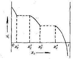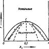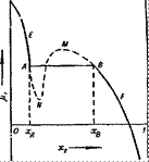 Если кривая имеет вид 2 и между (некоторыми значениями х2 имеется участок, обращенный выпуклостью вверх, то в этой области ( N М) система не может находиться в состоянии устойчивого равновесия и распадается на две фазы.