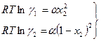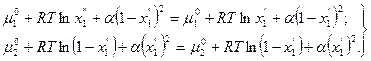 Итак, уравнения (34) для коэффициентов активности приводят к критической точке, соответствующей эквимолекулярной смеси двух компонентов. Кроме того, в этом случае мы всегда имеем дело с верхней критической температурой растворения, так как при Т > Тс неравенство (38) всегда выполняется и фаза является устойчивой, независимо от ее состава.