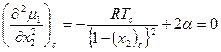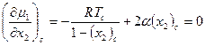 Прежде всего, используя уравнения (2), можно рассчитать положение критической точки при данном давлении р. Если Тс и ( x 2 ) c — соответственно критическая температура и критический состав, то