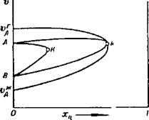 Рис. 3. v —x-диаграмма двойной смеси ниже критической области (Т = const).