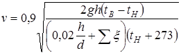 Скорость воздуха в поперечном сечении вытяжной шахты,