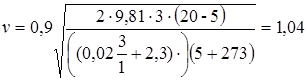 Установим минимальную допустимую скорость истечения воздуха через отверстие в конце воздухораспределителя,