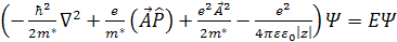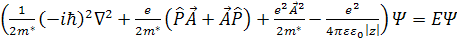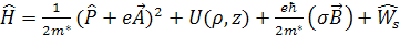 Гамильтониан в приближении эффективной массы для векторного потенциала (2.1.1) с учетом знака заряда электрона, в цилиндрических координатах выбранной модели запишется как
