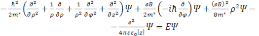 Рассмотрим квантовую точку, находящуюся в продольном по отношению к оси Оz магнитном поле, содержащую мелкий водородоподобный примесный центр, расположенный в центре квантовой точки. Рассматривается случай сильного магнитного поля, когда магнитная длина aB много меньше эффективного боровского радиуса ad. Дальнейшие вычисления проводятся в цилиндрической системе координат с началом О в центре квантовой точке. Вектор магнитной индукции