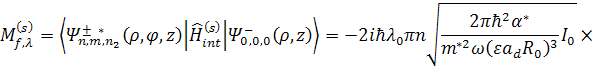 В дипольном приближении матричные элементы электрон-фотонного взаимодействия, определяющие переходы электрона из основного состояния примесного центра в конечное состояние в результате поглощения фотона с поперечной поляризацией, записывается следующим образом