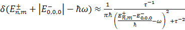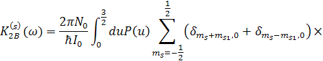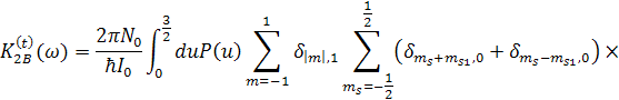 Коэффициент поглощения комплекса квантовая точка – водородоподобный примесный центр, с учетом дисперсии размеров, для случая поглощения фотонов поперечной поляризации вычисляется по формуле (предполагается, что в квантовой точке имеется по одному примесному центру, расположенному в точке Ra = (0,0,0))