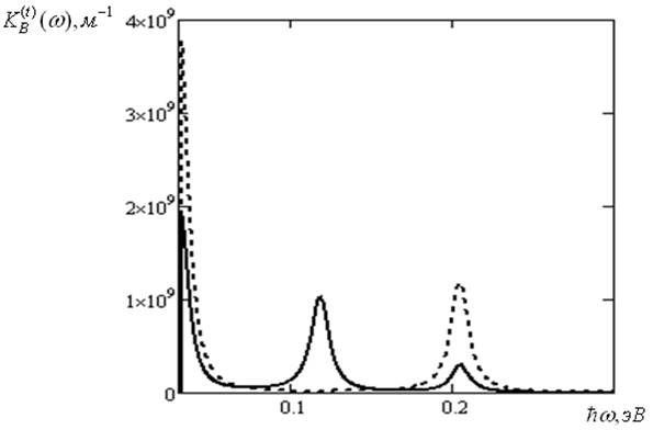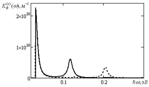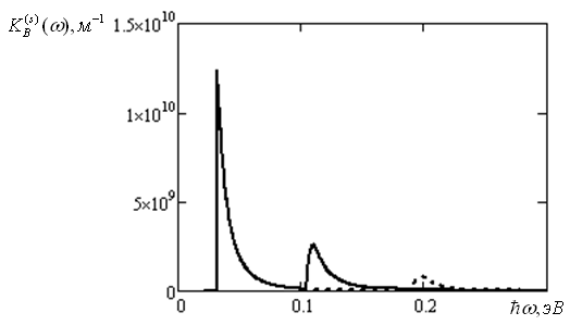 Рисунок 6 – Спектральная зависимость коэффициента примесного поглощения с учетом лоренцева уширения уровней энергии электрона