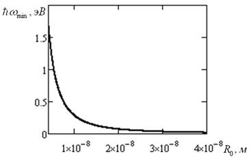 На рисунке 10 представлена зависимость порогового значения энергии фотона в случае примесного поглощения света в квантовой точке на основе InSb от радиуса.
