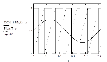 Рисунок 2.2.1 – Зависимость ШИМ – 1, пилообразного напряжения и входного сигнала.