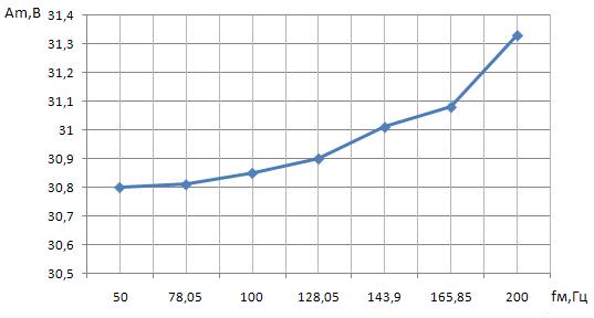 | fм,Гц | 50 | 78,05 | 100 | 128,05 | 143,9 | 165,85 | 200 |