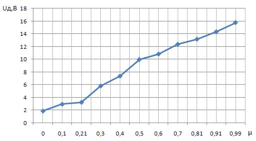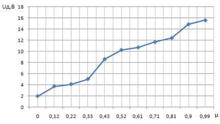 Рисунок 2.3.1 – Зависимость действующего напряжения на нагрузке от глубины модуляции µ
