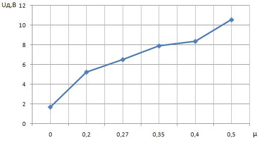 | Uд,В | 1,7 | 5,25 | 6,52 | 7,91 | 8,37 | 10,56 |