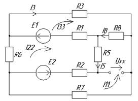 Рассчитаем напряжение холостого хода, составив уравнение второго закона Кирхгофа: