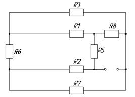 | Элемент схемы | E1 | E2 | R1 | R2 | R3 | R4 | R5 | R6 | R7 | R8 |
