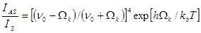 Інтенсивність розсіювання росте пропорційно 4-ій степені частоти світла. Це дає співвідношення інтенсивностей між антистоксовою AS - і стоксовою S - компонентами, пропорційне величині