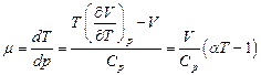 Откуда и получается интересующий нас коэффициент Джоуля – Томсона: