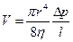 где V – объем жидкости ,протекающей за 1 с через сечение трубки, Δp – перепад давления,l и r – длина и радиус трубки, η – вязкость жидкости. Скорости течения, следовательно, при данной вязкости растет с увеличением Δp и падает с ростом l.
