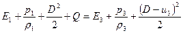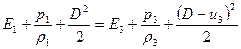 В системе координат, в которой этот фронт покоится (рис.2б), законы сохранения массы, количества движения и энергии для плоского фронта в трубе постоянного сечения дают [6]: