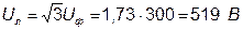 де Uф і Uл – відповідно фазна і лінійна напруги, В ;