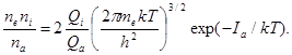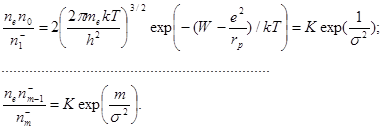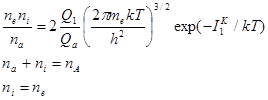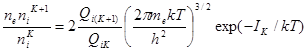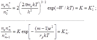 Эта формула, определяющая константу ионизационного равновесия, называется формулой Саха. По аналогии с предыдущим можно получить цепочку уравнений Саха для последовательности степеней ионизации атома, т.е. для реакций