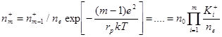 Аналогичным образом можно записать все прочие реакции, сопровождающиеся генерацией и исчезновением заряженных частиц в плазме. Для реакции (1.1.1) условие равновесия принимает вид