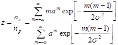 Подставляя (2.1.11) в (2.1.10), получаем уравнение для среднего зарядового числа z КЧ в плазмозоле. Решив это уравнение относительно z и подставив найденное значение корня в условие электронейтральности среды (2.5), получим среднее значение концентрации электронов в газовой фазе: