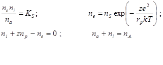 Таким образом, уравнения (2.1.10) – (2.1.12) полностью решают вопрос об ионизационном равновесии в плазмозоле идентичных сферических частиц в рамках дебаевского рассмотрения.