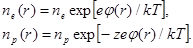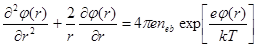 – радиусу частиц конденсата, приходим к замкнутой системе уравнений для определения концентрации электронов в плазме. Действительно, из уравнения Пуассона (3.1.4) находим параметрическую зависимость потенциала в ячейке от neb