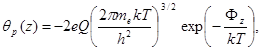 где Q – отношение статистических весов частицы p в зарядовых состояниях z+1 и z; Фz – работа выхода электрона с поверхности заряженной частицы радиуса rp .