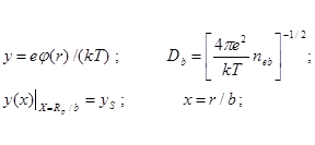 Прежде чем составлять алгоритм решения задачи с термической ионизации монодисперсного плазмозоля в рамках ячеечной модели, преобразуем (3.1.1) – (3.1.8) к виду, удобному для программирования. Если нормировать значения потенциала на kT, а расстояния посредством b – радиуса ячейки, то математическую модель задачи можно записать как