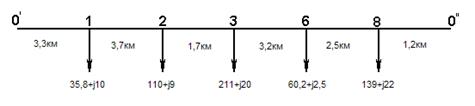 Длина участков 10 кВ, км: L0-1= 3,3;