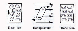 - смещение положительного и отрицательного зарядов в противоположные стороны, т.е.ориентация молекул.