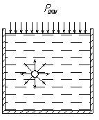Рассмотрим сосуд, наполненный жидкостью. Если выделить в нем бесконечно малый объем жидкости, то на этот объем будут действовать силы со стороны соседних таких же бесконечно малых объемов (рис.1.4). Кроме этого на свободную поверхность жидкости действует сила атмосферного давления Pатм