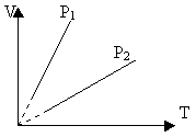 5. На малюнку зображений графік залежності об'єму даної маси газу від температури. Виберіть правильне твердження.