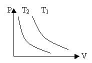 3. На рисунке изображены две изотермы для двух идеальных газов. Сравнить Т1 и Т2. Массы газов постоянны. Р Т2 Т1