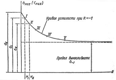 и т. д. Соединяя полученные по данным опытов точки плавной кривой, получают так называемую кривую усталости, или кривую Вёлера (По фамилии немецкого учёного A.Wöhler, впервые изучавшего явление усталости в 1852-1892 гг.)(рис. 5.15), соответствующую симметричным циклам