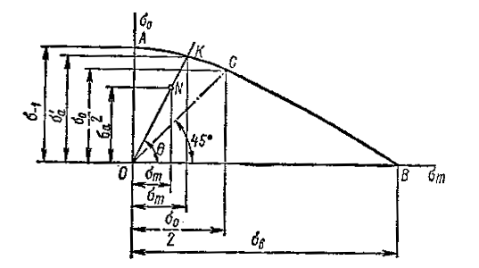 Формулы (22.15), (23.15) действительны при всех указанных способах схематизации диаграмм предельных напряжений; изменяются лишь величины коэффициентов