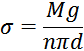 | d, м | n | M, кг |