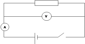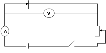 2. Підключити батарею спочатку як показано на схемі і виміряти напругу і силу струму при різних положеннях реостата (2-3 положеннях)