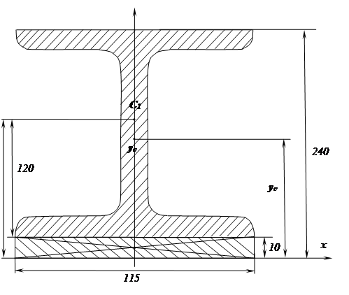 Определить место положения центра тяжести сечения составленного из прокатных профилей