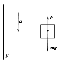 Так как все силы направлены по вертикали, выберем вертикальную ось у с положительным направлением по ускорению (вниз)