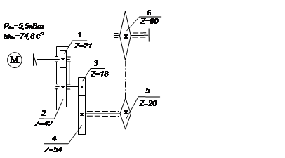II ступень – цепная передача с числом зубьев на ведущем колесе Z=20, на ведомом – Z=60;