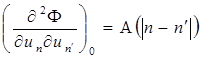 где и пробегает все значения. Если учитывать только ближайших к атому п соседей, то п' = п, n+ 1, n—1, и мы получим А(0) + А(1) + А(-1) = 0. Видно, что (1.1.9) дает тоже выражение для силы fn что и (1.1.3), если положить А(1) = - 1/2A(O) = β [6].