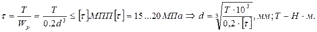 Предварительно оценить диаметр вала можно также ориентируясь на диаметр того вала, с которым он соединяется,(валы передают одинаковый момент Т). Например, если вал соединяется с валом электродвигателя (или другой машины) то диаметр его входного конца можно принять равным или близким к диаметру выходного конца вала электродвигателя.